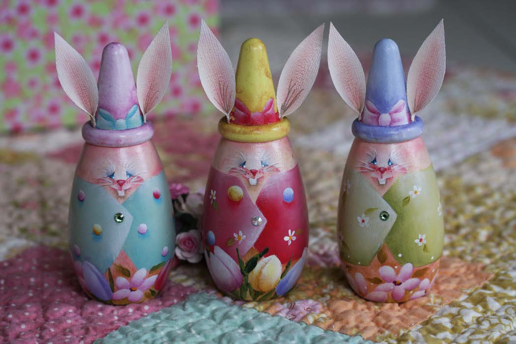 Painted on wooden eggs, approx. 4.5" each, canvas ears