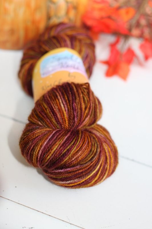 A little on the "Crunchy-wool" feel side, perfect for that beautifully, rustic Fall foliage color!