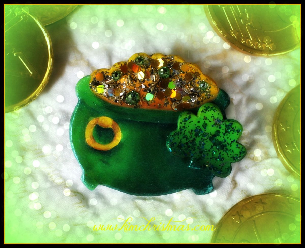 Kit includes 2 pce surface kit approx. 2 x 2.5", magnet, glittery gold embellishment & green gems
