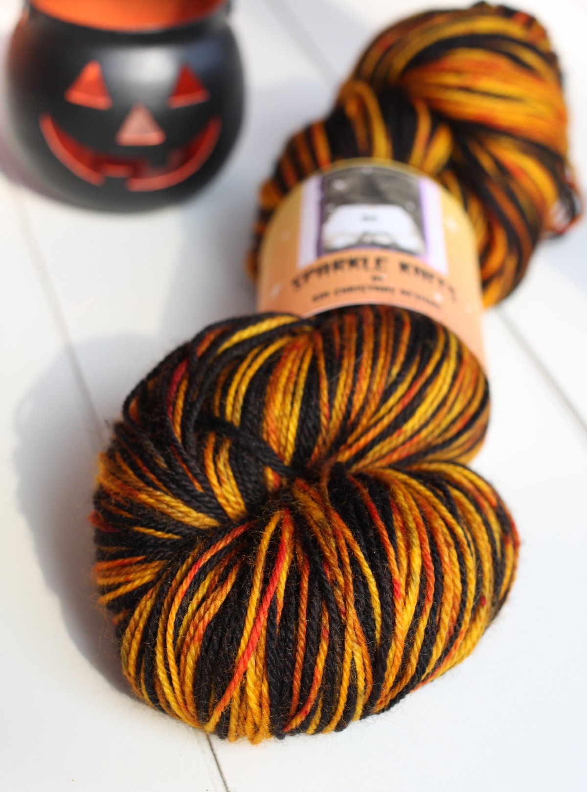 Soft, well-wearing sock yarn!Halloweenie style self-striping!